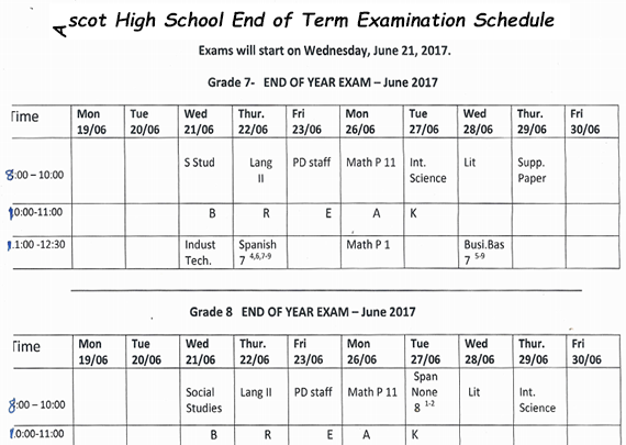 Students will begin to sit the end of term examinations for June tomorrow June 21, 2017.