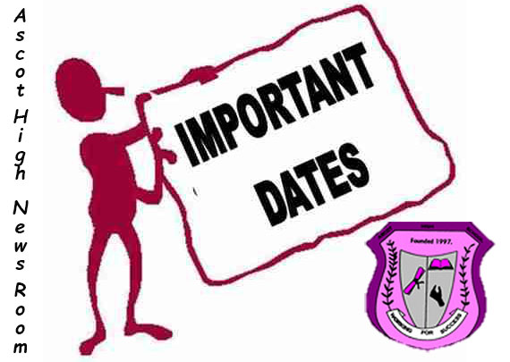 The following dates outlines the main activities of the school from now to end of the upcoming summer holidays:
