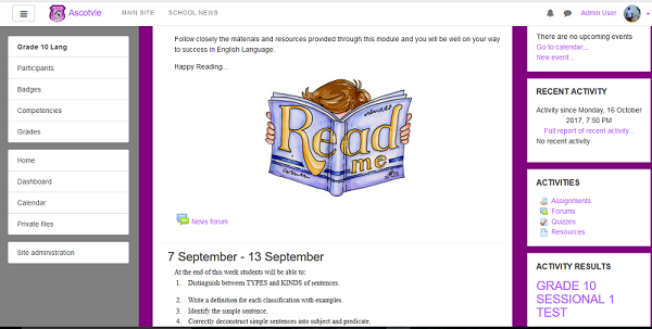 The Ascotvle is our school's virtual learning platform where students can access class information, content information, evaluation activities and other resources made available to them by their teachers. Through the Ascotvle, teachers are able to have online conferences with students, set up games for students, communicate with students, electronically review student's works and set up online quizzes for students. On the other hand, students are able to get notes they missed in class, communicate with other students via online chats and forums, write blogs and do many more activties.